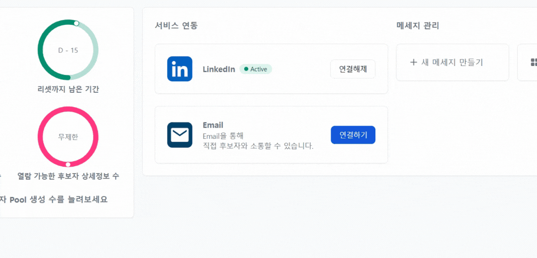 이메일과 링크드인을 연동하여 한 곳에서 모든 커뮤니케이션을 처리하고, 후보자와 실시간으로 소통할 수 있도록 지원합니다.