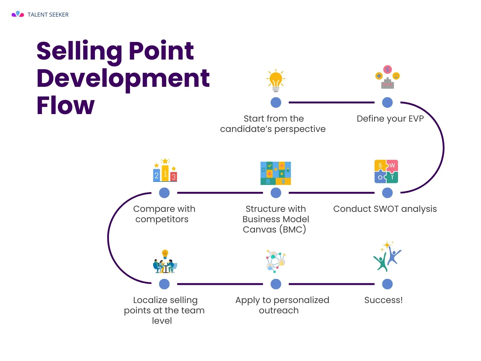 이 질문은 단순한 정보 전달이 아닙니다. 후보자가 진짜로 고민하는 건, 이직을 통해 무엇을 얻을 수 있는가입니다. 그리고 이 질문에 설득력 있게 답하기 위해 필요한 것이 바로 **셀링포인트(Selling Point)**입니다.