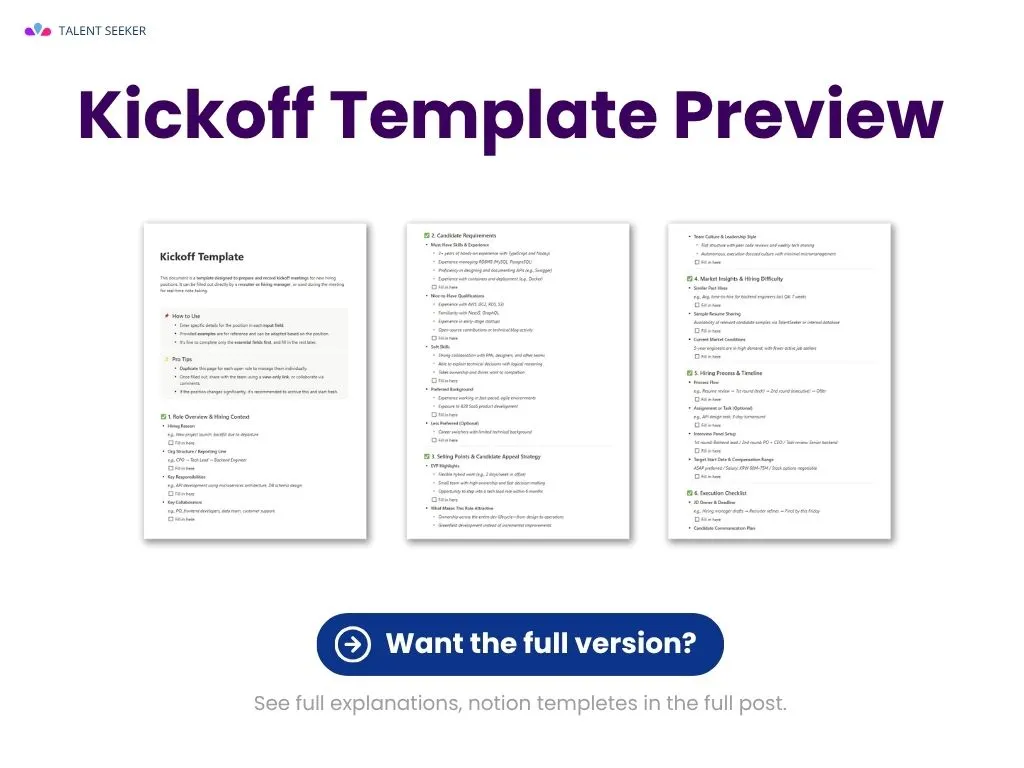 아래 Kickoff Template을 활용하면, 포지션마다 일관되고 효율적인 채용이 가능해집니다.