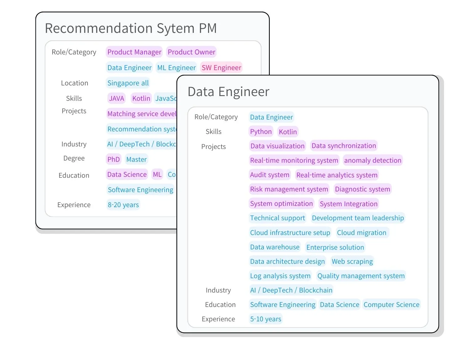 Deep understanding the complex relationships between roles, skills, and project experiences.